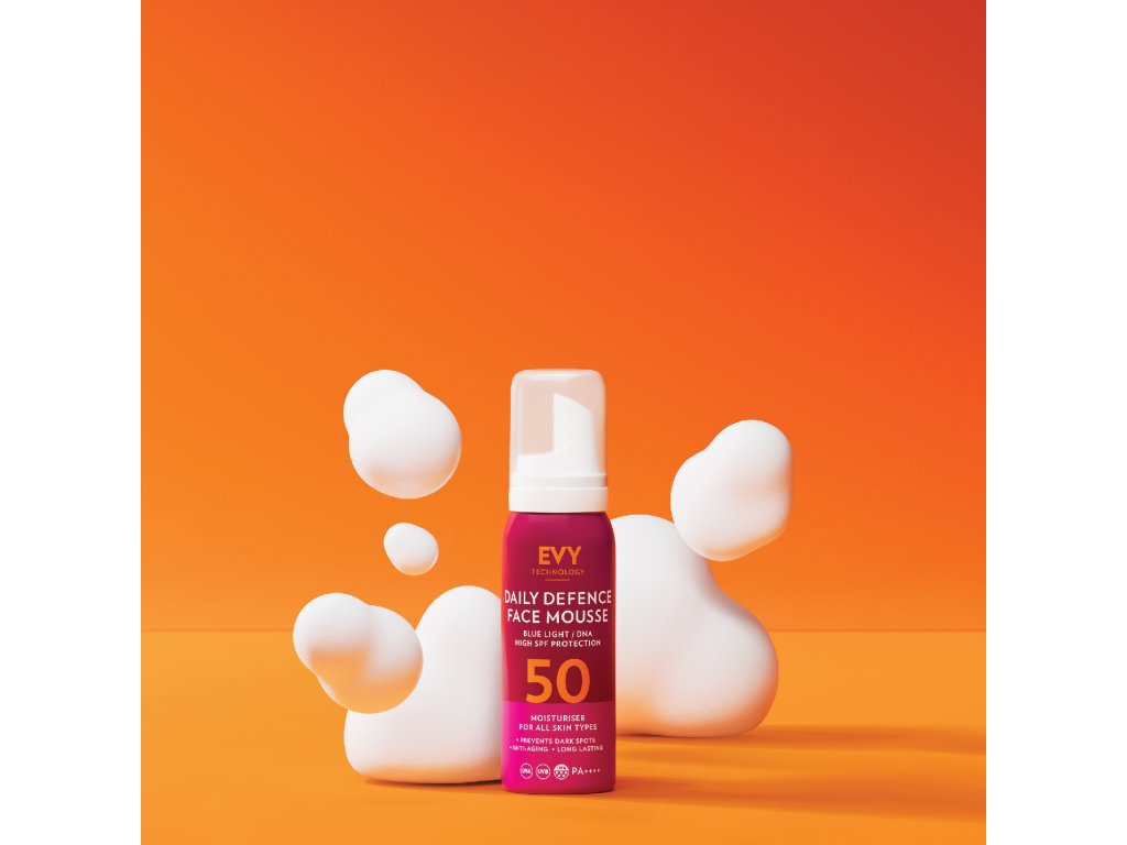EVY Daily Defence Face Mousse SPF 50 je ochranná pleťová pena s patentovanou technológiou, ktorá zabezpečuje dlhodobú a spoľahlivú ochranu pred UVA a UVB žiarením, ako aj modrým svetlom (HEV). Zároveň posilňuje kožnú bariéru, hydratuje a pomáha predchádzať poškodeniu spôsobenému slnkom.